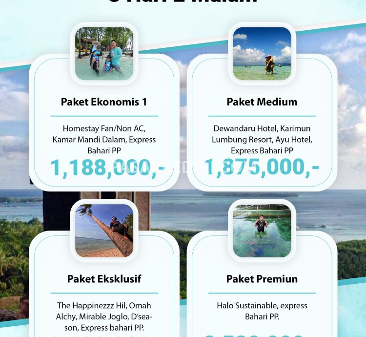 Yuk, liburan ke Karimunjawa 3 Hari 2 Malam bareng Karimunjawa Bagus – trip santai, seru, dan super worth it buat kamu yang pengen liburan rame-rame bareng keluarga, temen kantor, atau satu geng kerjaan!